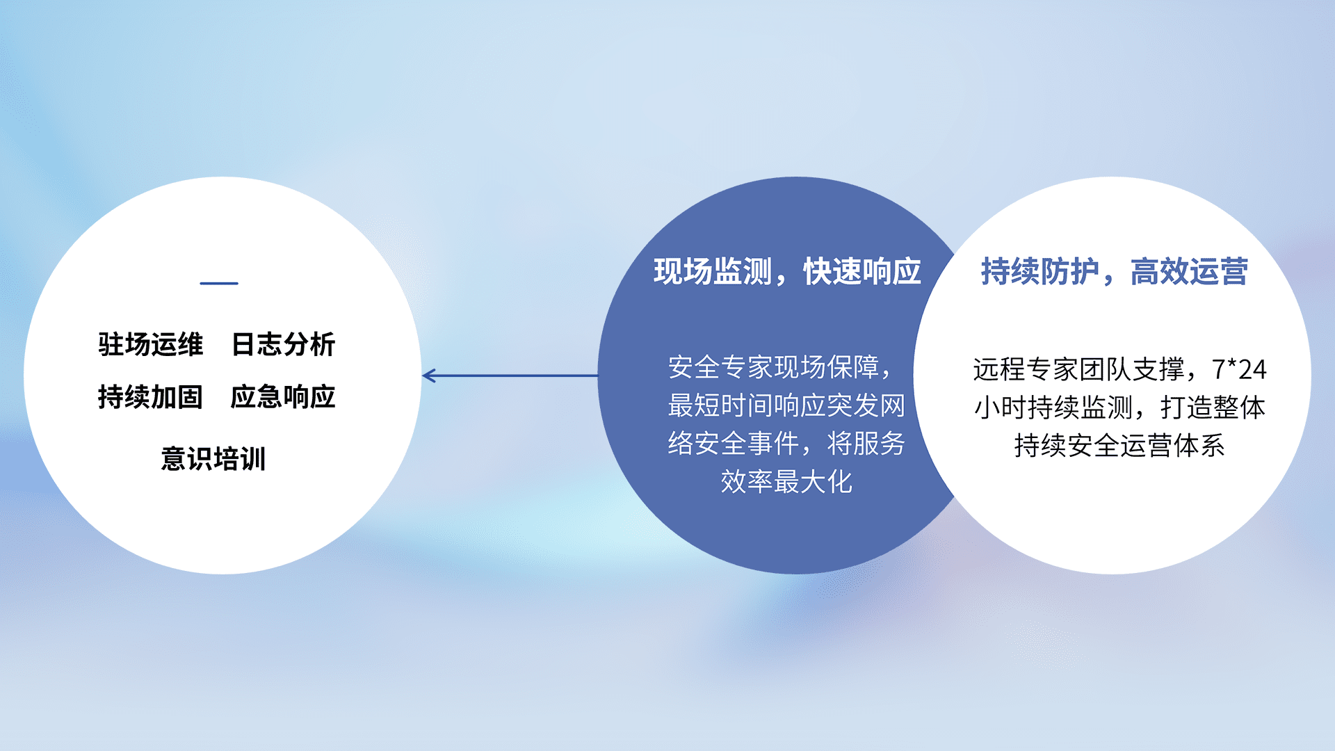7X24小时持续监测安全事件,保持安全策略有效性,降低资产脆弱性风险,,精准拦截黑客攻击,,,,减少被黑客利用的机会,,,,第一时间遏制,,,降低损失。。。。